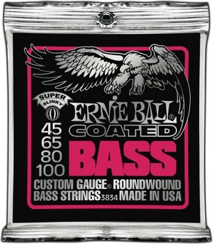 Ernie Ball strings have been a top choice for players of all types since the early 1960s, when guitarists came into Ernie Ball's music store, customizing their string gauges to make their axes easier to play. After fruitless attempts to interest major guitar manufacturers in a lighter set of strings, Ernie Ball decided to start making his own. When you open a pack of his strings today, you know you're getting a quality set of strings designed to give you great tone, reliable performance, and long life. You can't go wrong when you string up with Ernie Ball strings!Ernie Ball Coated Bass Super Slinky Bass Strings are heavily used by both amateurs and professional musicians. Made from nickel plated steel (NPS) windings wrapped around tin plated, hex shaped steel core wire, Slinkys produce a well balanced, all-around great sound, no matter what your playing style.Ernie Ball's Coated Electric Titanium RPS Super Slinky Strings combine the latest technological advancements in string manufacturing. All wound strings are treated with a micro-thin layer of enamel that prevents decay and corrosion up to five times more than uncoated sets. In addition to treating the wound strings, each plain string features a rust-resistant plating along with a patented reinforcement winding of titanium wire. Titanium's inherent strength prevents string breakage, string slippage, and is proven to keep your bass strings in tune better than conventional plain strings. Ernie Ball Coated Slinky bass strings maintain the feel and sound of uncoated sets, combining the added protection with the vibrant tone Ernie Ball customers have relied on for over 50 years.Ernie Ball Coated Bass Super Slinky Bass Strings Features at a Glance:Type: Bass, 4-string045, .065, .080, .100Round woundTin-plated hex steel coreNickel-plated titanium reenforced steel wrapErnie Ball Coated Titanium Round Wound Bass strings give you solid tone and extended playability!