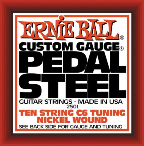 Gauges 12-14-17-20p-24w-32-36-42-50-66. Ernie Ball 2501 Nickel Wound Pedal Steel Guitar Strings are crafted from nickel-plated steel wire wrapped around tin-plated, hex-shaped steel core wire. By far the most popular, these strings produce well-balanced all-around good sound. All Ernie Ball strings are precision manufactured to the highest standards and most exacting specs to assure consistency, optimum performance, and long life.