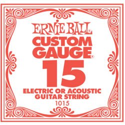 Ernie Ball strings are carefully crafted using the highest quality materials to ensure superior tone and reliability. The specially tempered high carbon steel core wire's hexagonal shape ensures the wrap wire is securely held in place through the length of the string. Precision crafted Swiss brass ball ends are attached with a triple lock twist. Made of specially tempered tin plated high carbon steel. This string is great for use on electric and acoustic guitars, banjos and mandolins but, not classical guitars. Gauge: .015