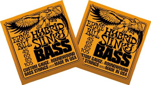 Ernie Ball 2833 Hybrid Slinky Round Wound Bass Strings offer maximum clarity and serious punch. With a combination of Super Slinky and Regular Slinky gauges, the Hybrid Slinky set has proven to be a popular staple for musicians worldwide. Each bass string is manufactured with the finest and freshest raw materials in the beautiful Coachella Valley of Southern California. The list of endorsers for Ernie Ball Slinky bass strings reads like a who's who of top-selling artists. Gauges 45-65-85-105......